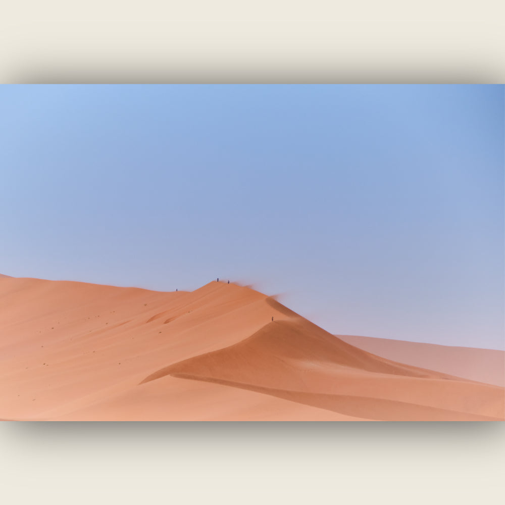 Dune45 - Le sable pulse, lumineux, presque en suspension. Chaque grain accroche la lumière, emporté sans bruit. L’air est sec, tendu. La dune respire en surface.