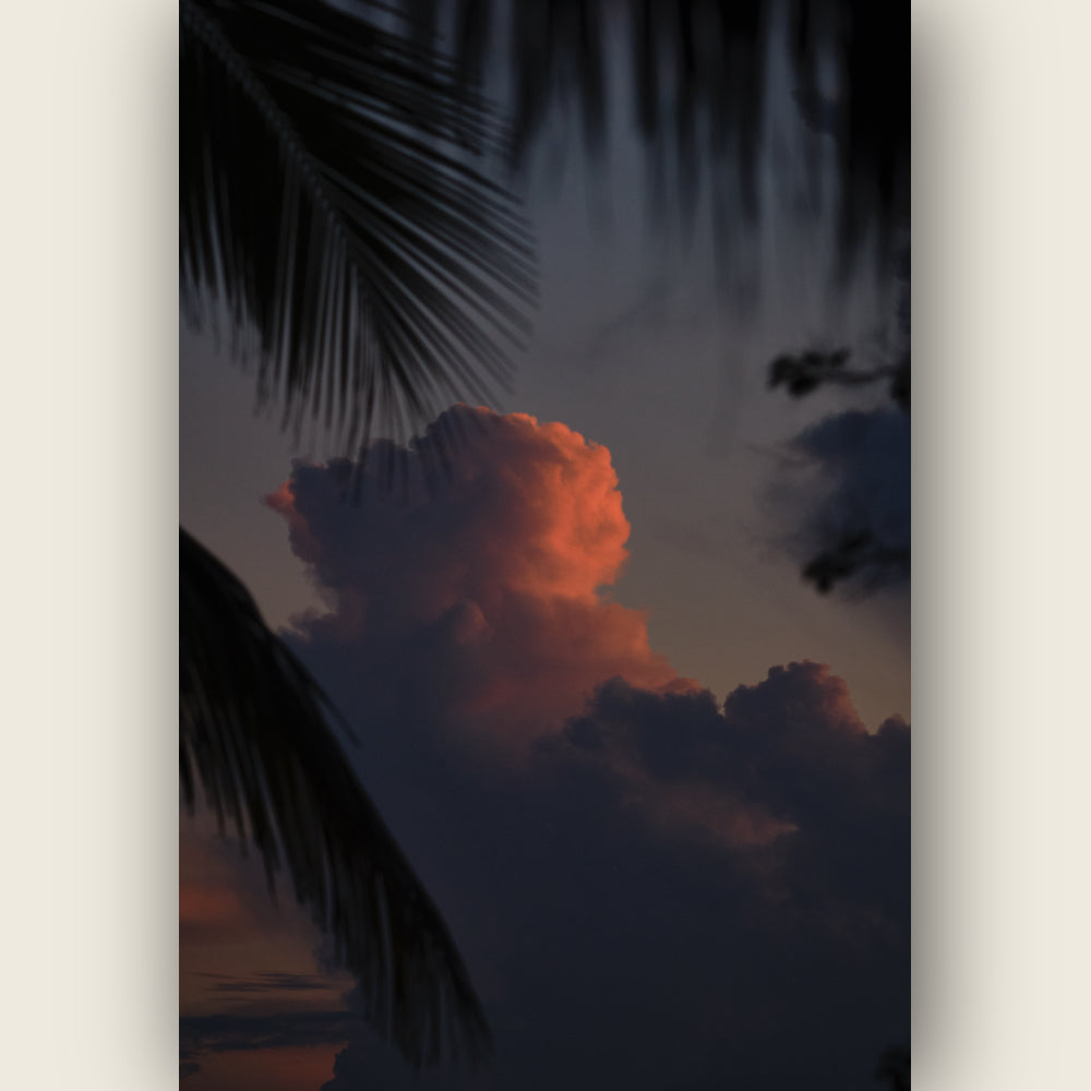 Dark velvet with a hint of ember. A cloud nearly still, as if listening to the light.